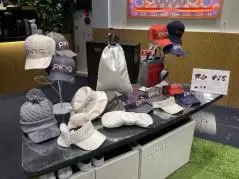 など、ゴルフ女子たちも興味津々。かっこいいイメージが強いピンゴルフだが、かっこいいだけでなく、可愛らしいアイテムや『ミスターピン』をあしらった個性的なアイテムなど様々。