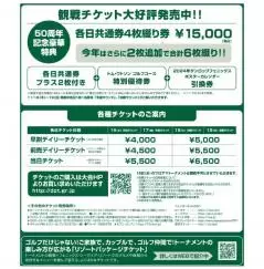 今年は各日共通券4枚綴り券に「50周年記念豪華特典」としてさらに各日共通券を2枚追加、合計6枚綴りで販売。