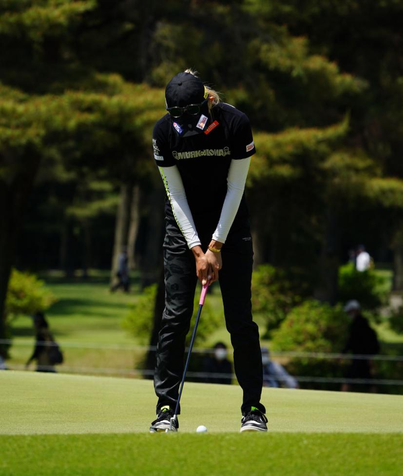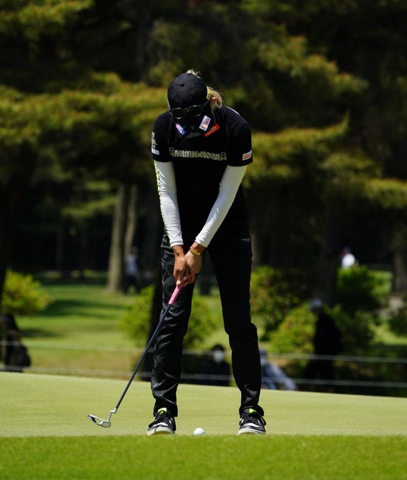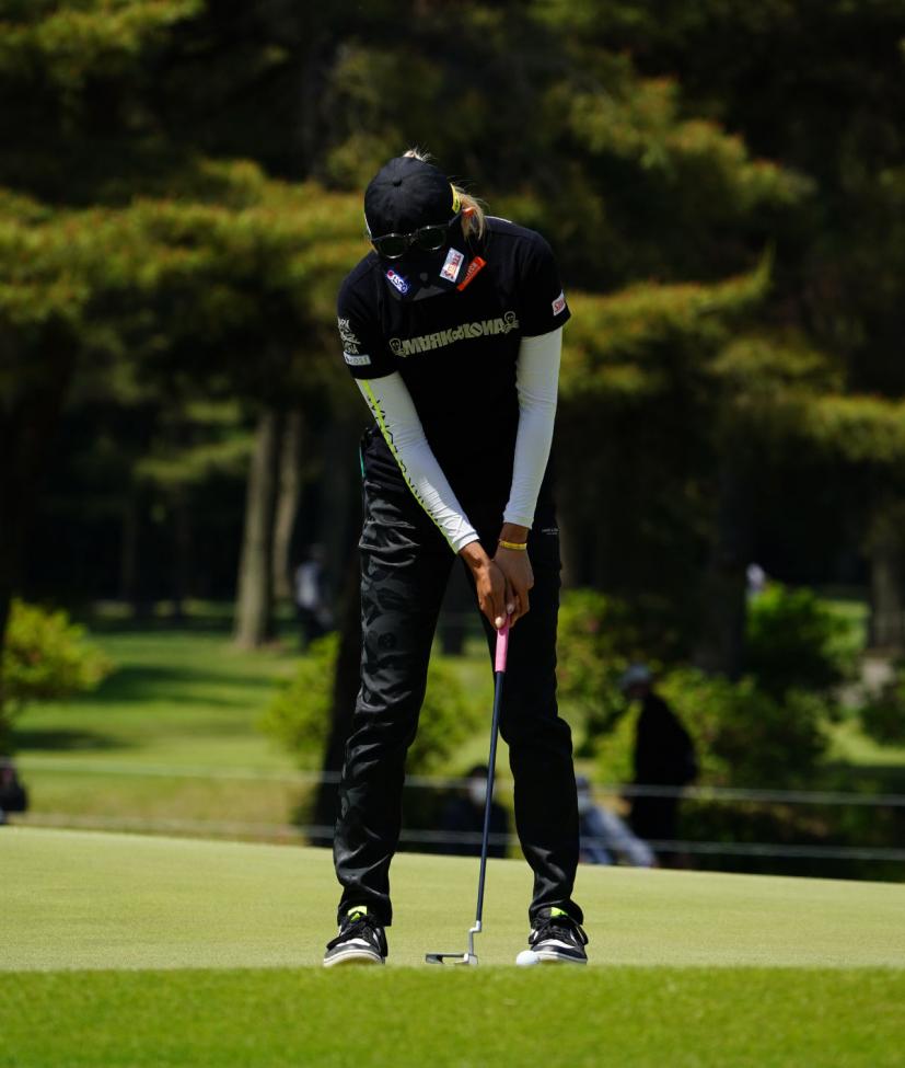 金田久美子のパッティングストローク(正面)|フィニッシュ