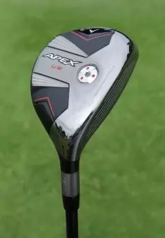 男子ツアーでも使用者が多い「APEX UW」はフェアウェイウッドに近い長さで、「顔」をフェアウェイウッドとユーティリティの中間にしているのが最大の特徴。前作のロフトラインナップは17度、19度、21度の3つだが、今回はツアープロからの要望で23度をプラス。アドレスした印象としてはよりユーティリティに近い雰囲気になっている。