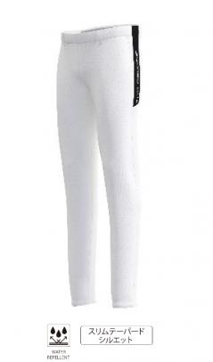左サイドのライン、ロゴデザインがスタイリッシュ感を際立たせるテーパードシルエットの中厚地パンツ。ホワイトカラーでも透けづらい素材を採用。