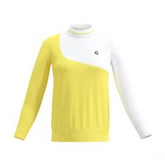 アシンメトリーなカラーブロックデザインが特徴的な、秋シーズンに最適な中厚地モックセーター。