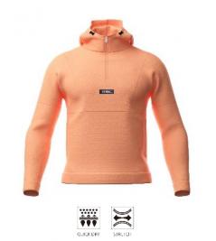 カジュアルな印象のスウェットフーディ。スポーティなハーフジップ仕様。