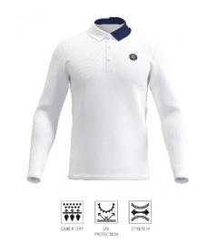 ベーシックな中厚地のロングスリーブポロ。襟にコントラストデザインがアクセント。