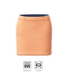 ストレッチ素材をベースに、部分的にプリーツを組み合わせたスコート。フェミニンな要素を入れながらも、大きすぎないプリーツがスポーティな印象。