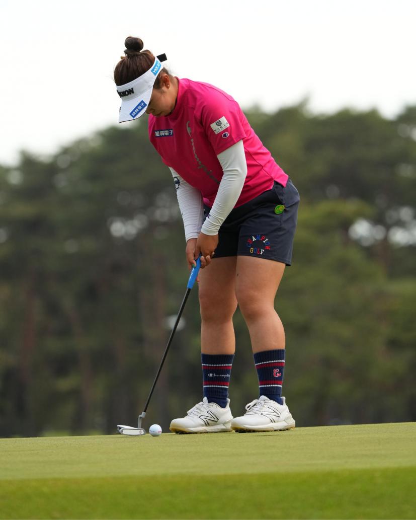 山下美夢有のパッティングストローク(斜め前方)|インパクト