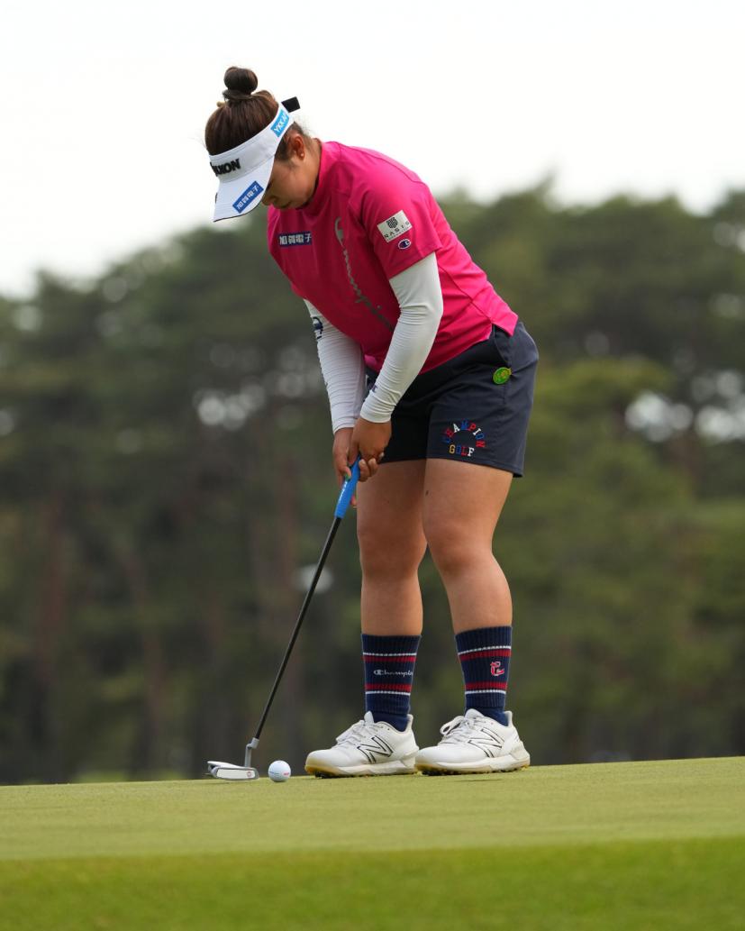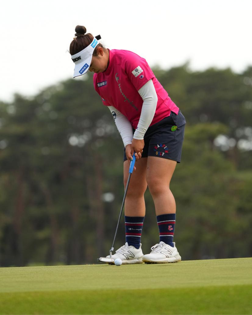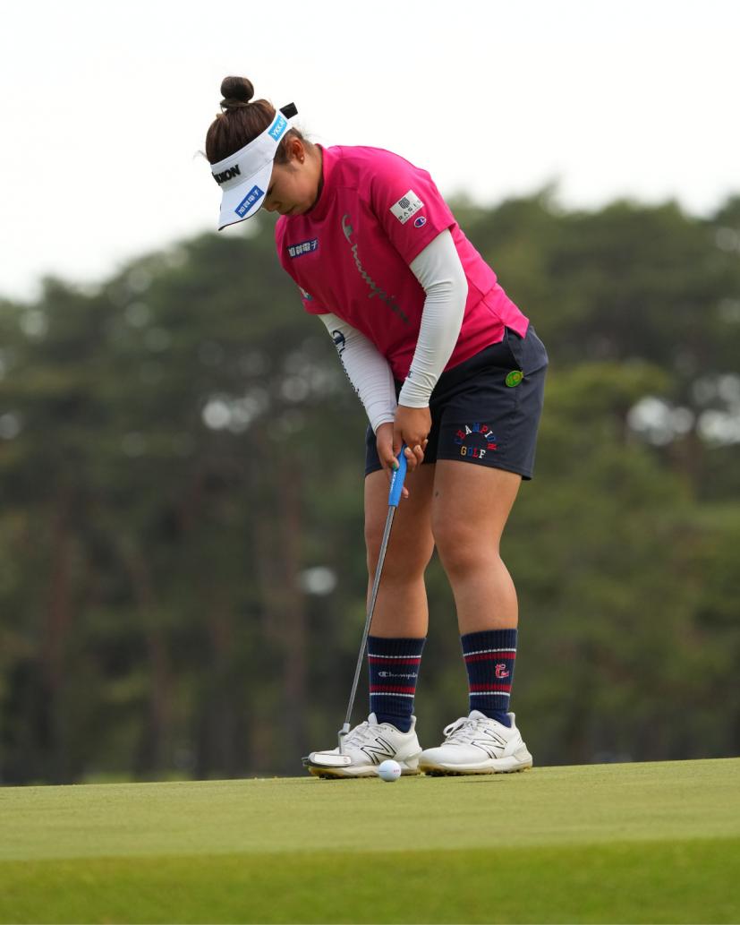 山下美夢有のパッティングストローク(斜め前方)|フォロー②