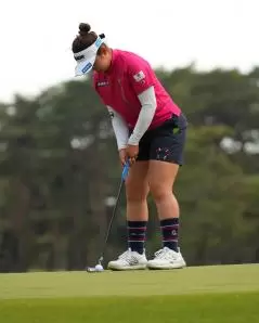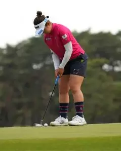 山下美夢有のパッティングストローク(斜め前方)|フォロー①