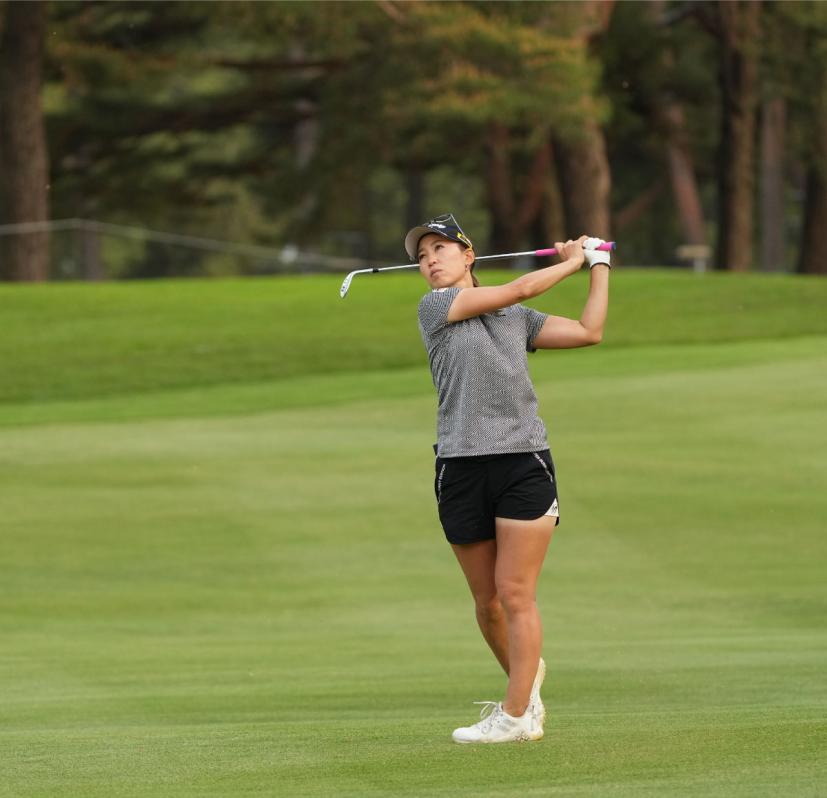 上田桃子のウェッジスイング(斜め前方)|フォロー①