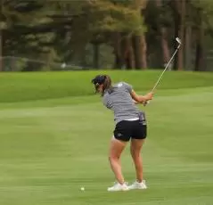 上田桃子のウェッジスイング(斜め前方)|インパクト