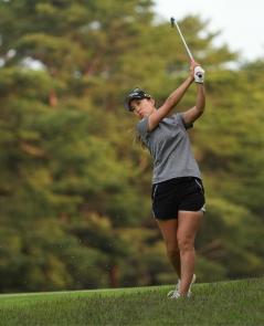 上田桃子アイアンスイング(斜め前方)|フォロー①