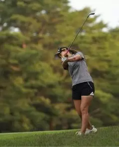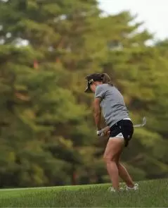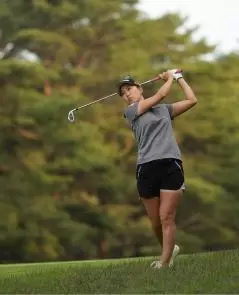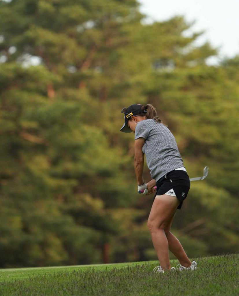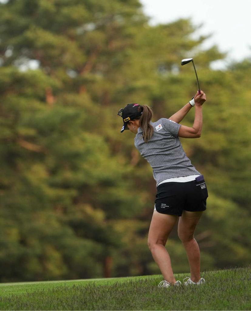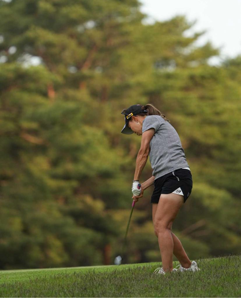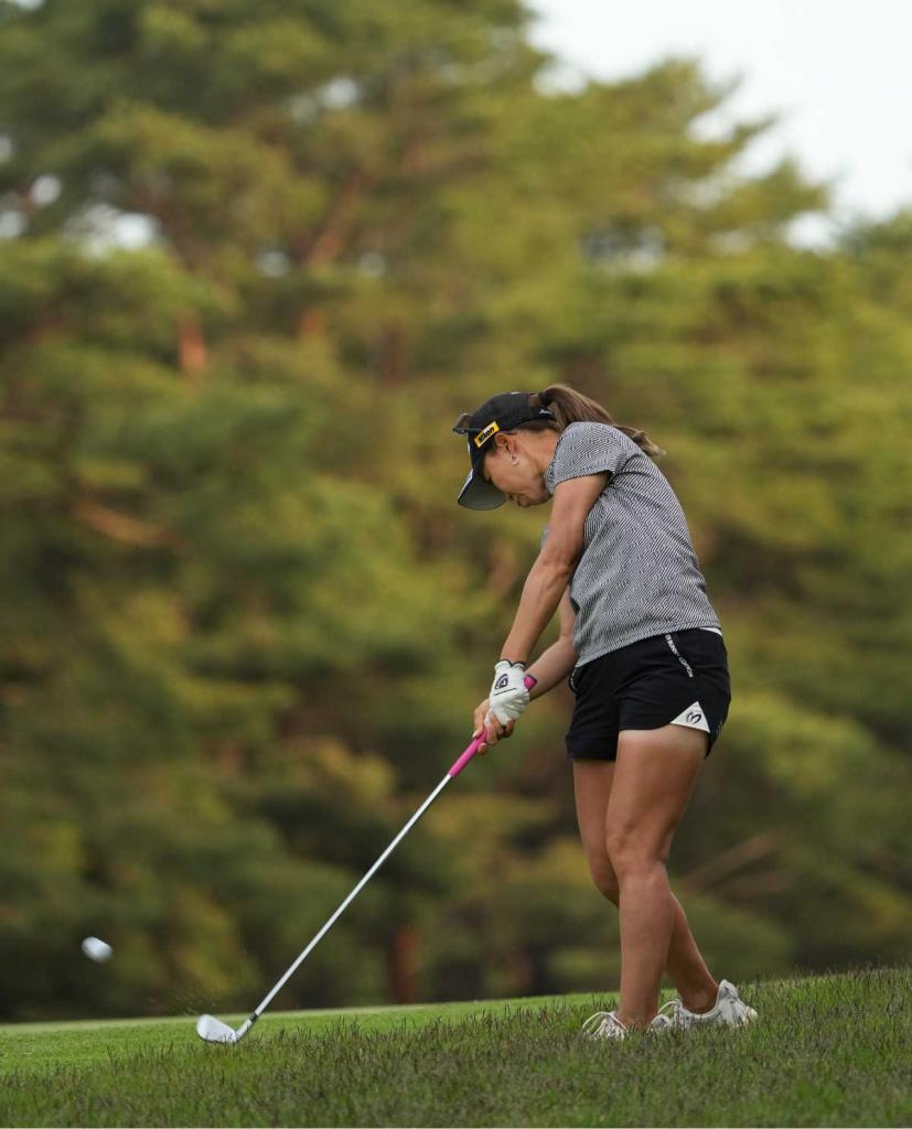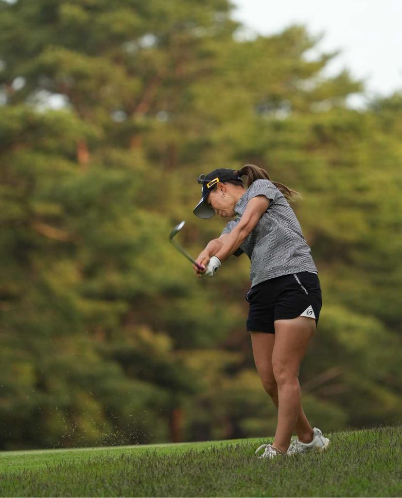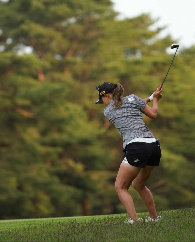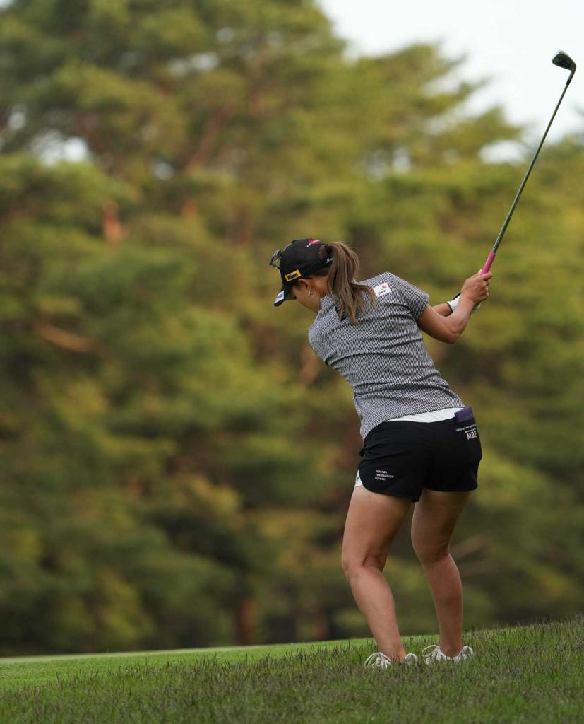 上田桃子アイアンスイング(斜め前方)|フォロー①