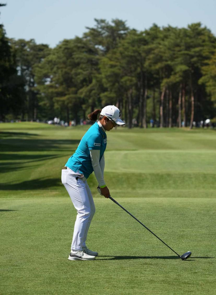 大里桃子のドライバースイング(後方)|アドレス