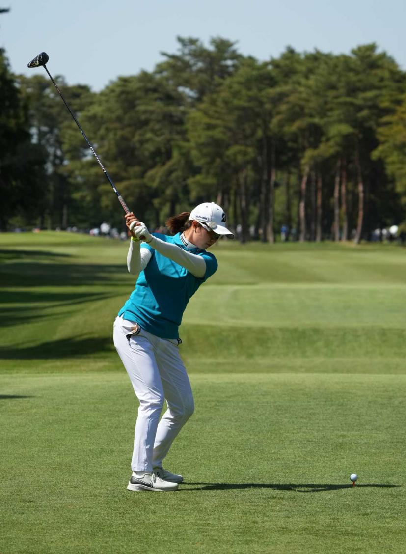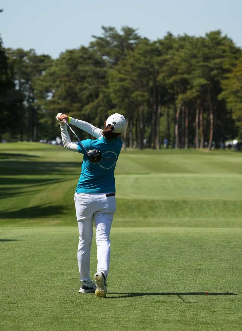 大里桃子のドライバースイング(後方)|フォロー①