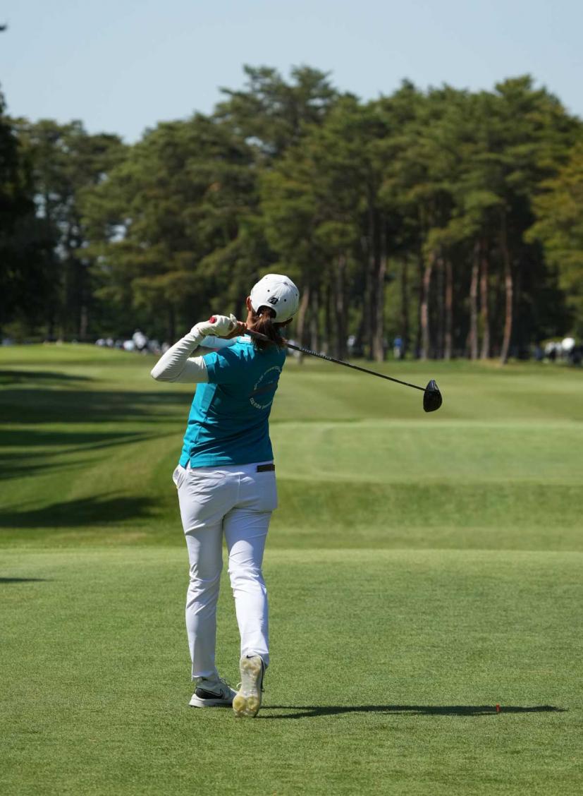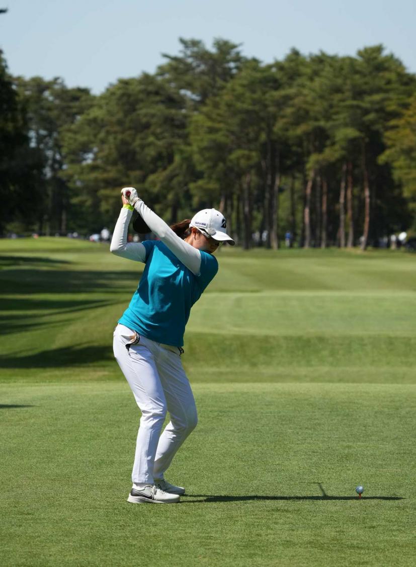 大里桃子のドライバースイング(後方)|バックスイング①
