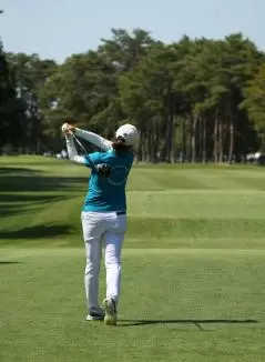 大里桃子のドライバースイング(後方)|フィニッシュ