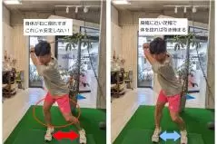 | ①アドレスは肩幅で | スウェーせず体の回転で打てるようになる |