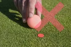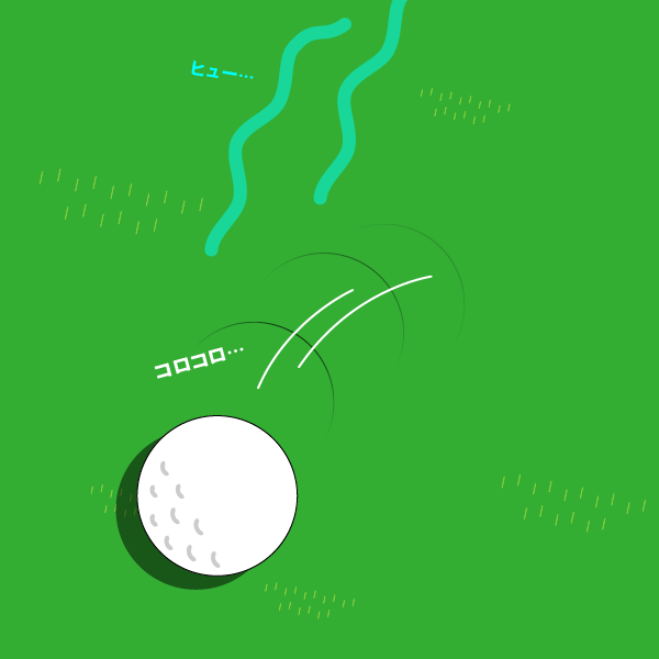 他の場所とグリーンの大きな違いは、マークが認められている点ですが、「風によって動いたボール」に関しても、マークしてピックアップするか前か、ピックアップした後かによって扱いが変わってきます。
