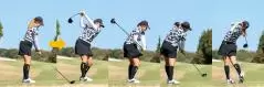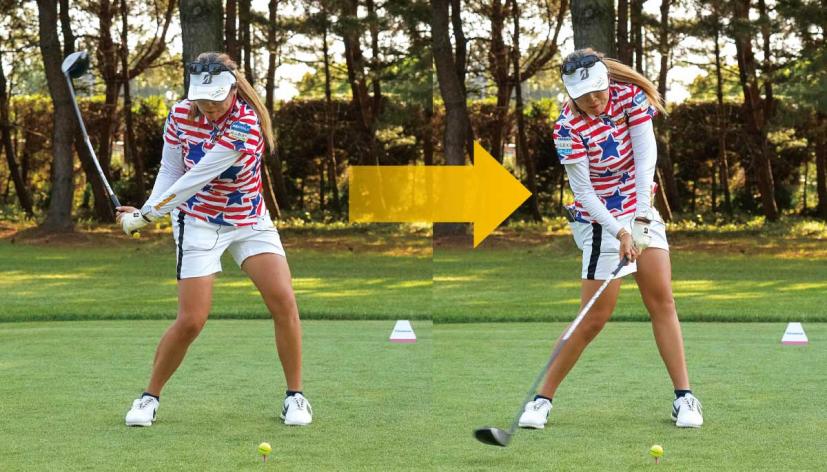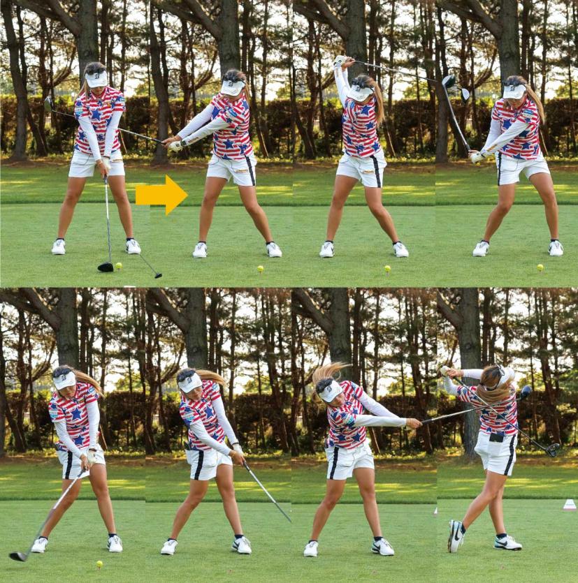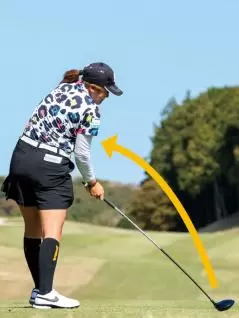 桑木志帆 「今まではインサイドからクラブを下ろしていたのですが、それを少しアウトサイドから下ろしてくるイメージに変えました。さらに、ボールの上からクラブヘッドを下ろすようにしました」