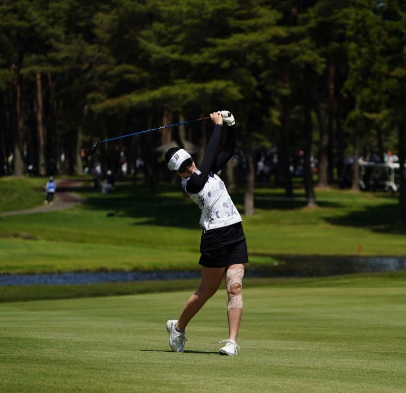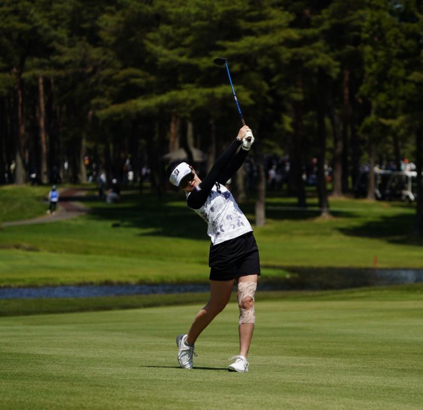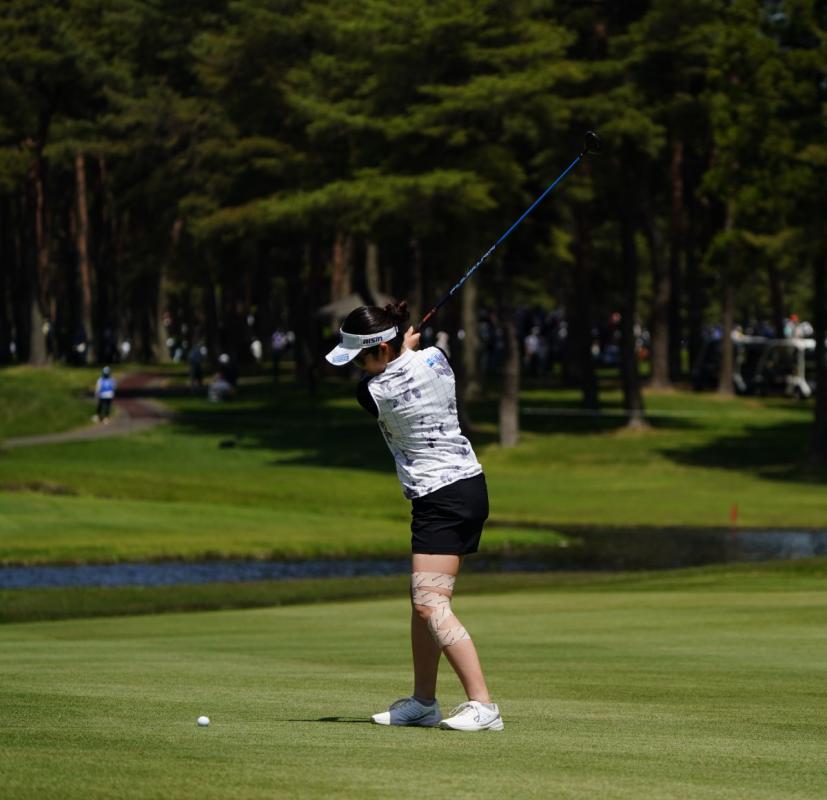 三ヶ島かなのフェアウェイウッドスイング(斜め前方)|フォロー②