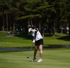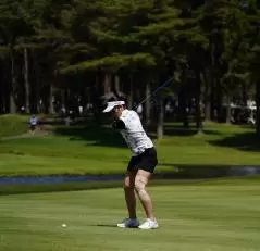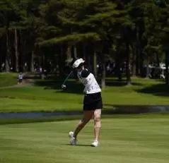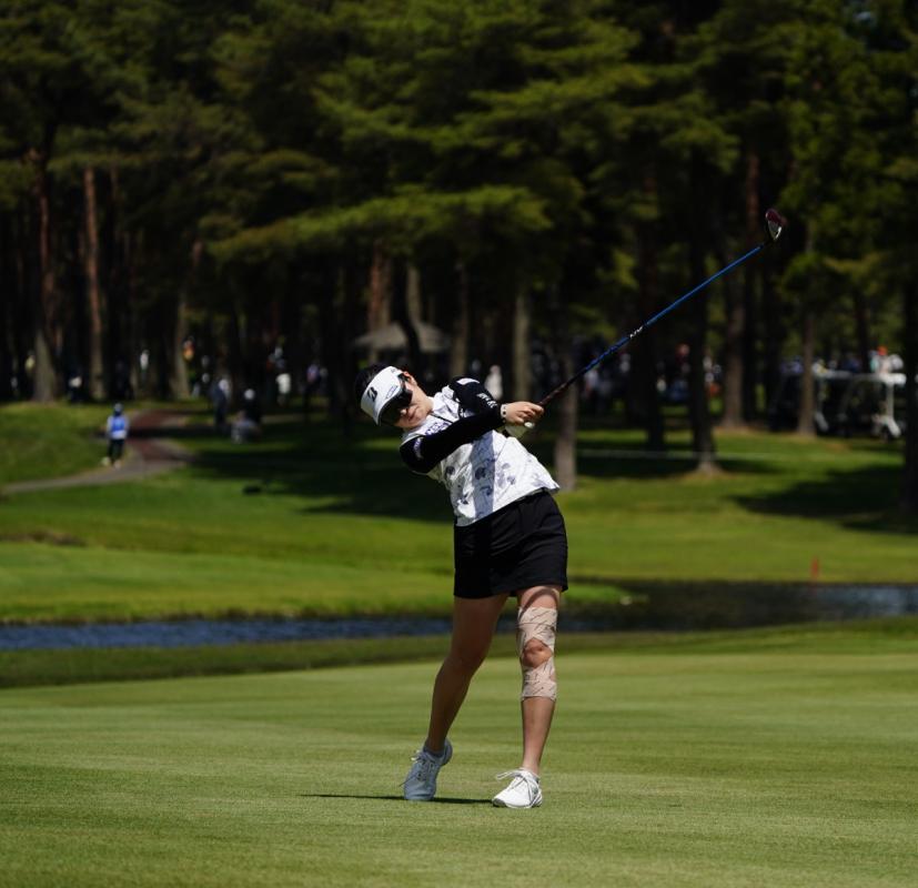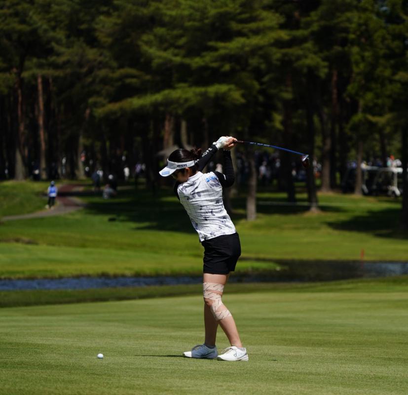 三ヶ島かなのフェアウェイウッドスイング(斜め前方)|フォロー①
