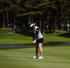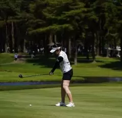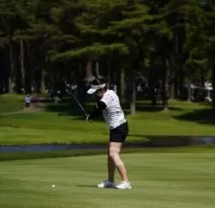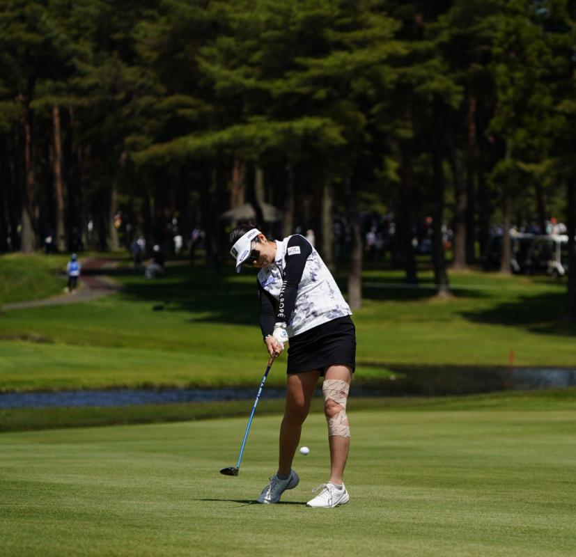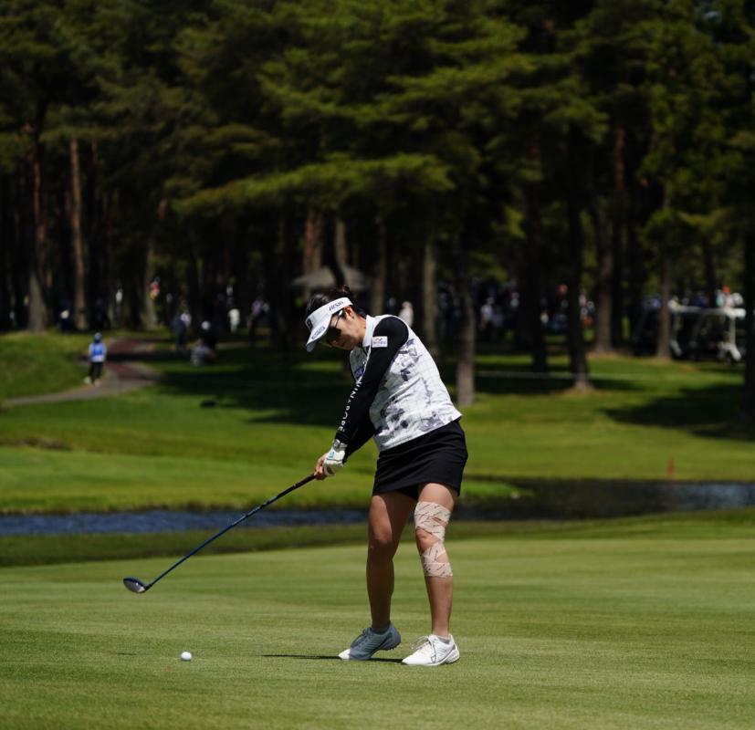 三ヶ島かなのフェアウェイウッドスイング(斜め前方)|インパクト