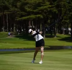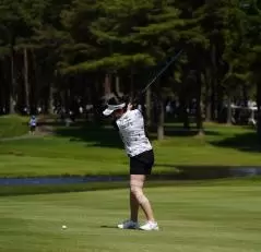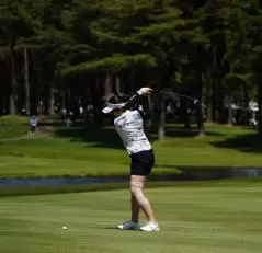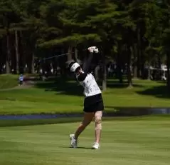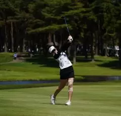 三ヶ島かなのフェアウェイウッドスイング(斜め前方)|フィニッシュ