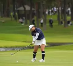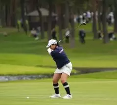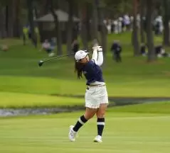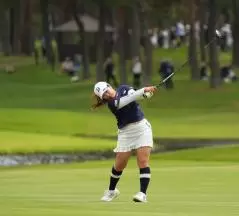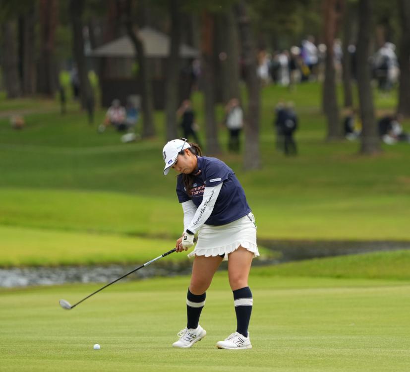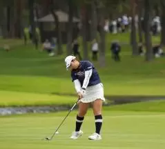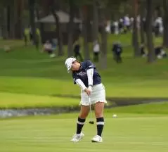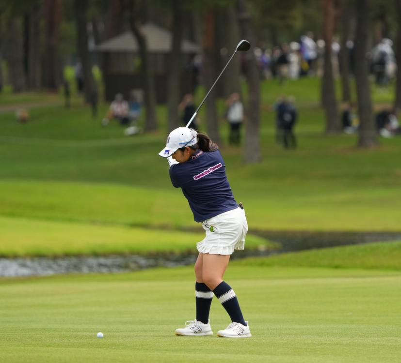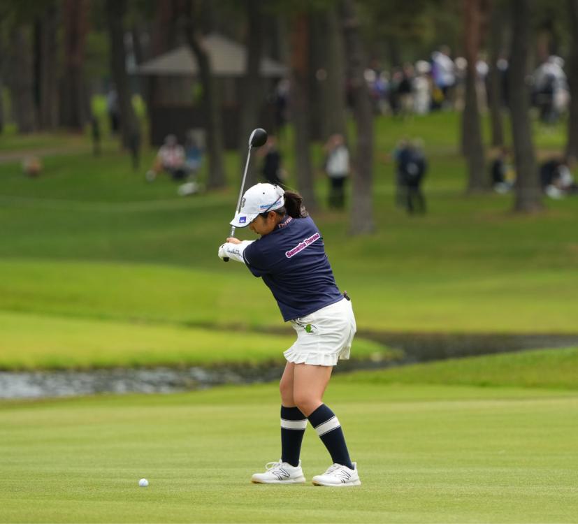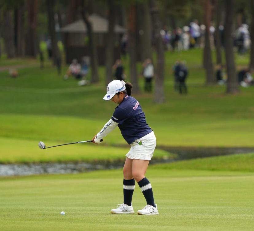 阿部未悠のフェアウェイウッドスイング(斜め前方)|フォロー①
