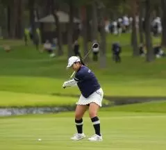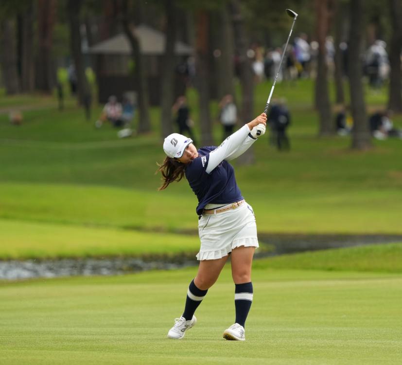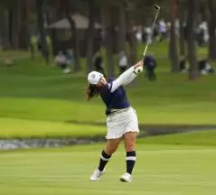 阿部未悠のフェアウェイウッドスイング(斜め前方)|フィニッシュ