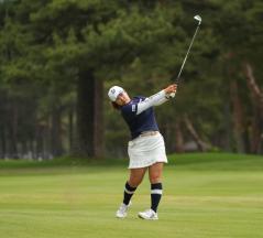 阿部未悠のアイアンスイング(斜め前方)|フォロー①