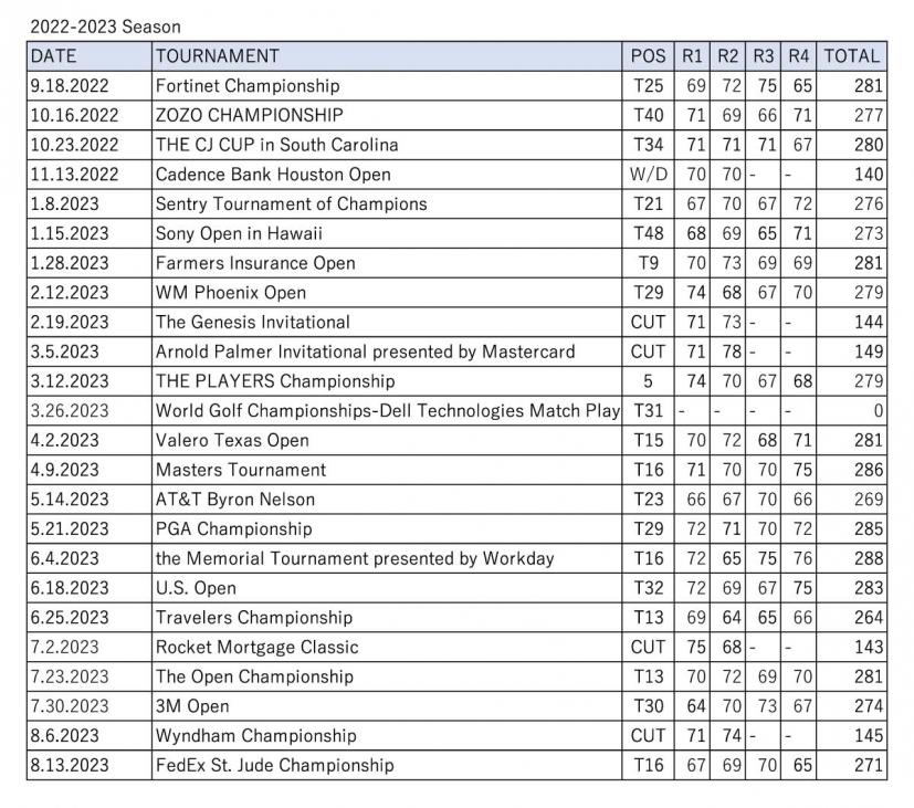 ※ワールドゴルフランキング、FEDEXランキング、戦歴は2023年9月4現在