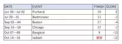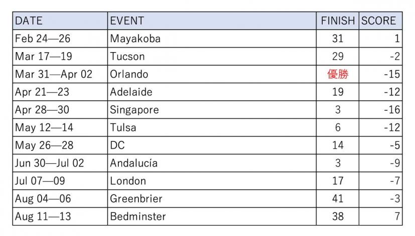 今季の主な成績:THE PLAYERS Championship 5位、Farmers Insurance Open 9位T