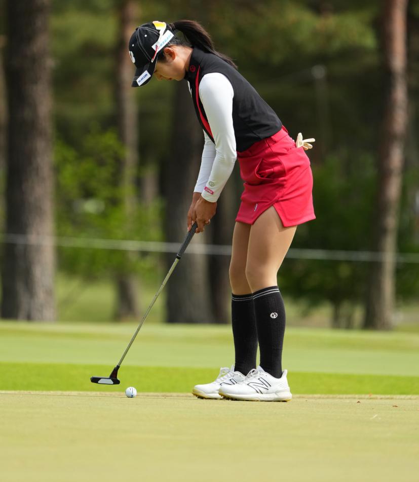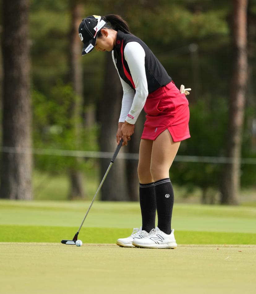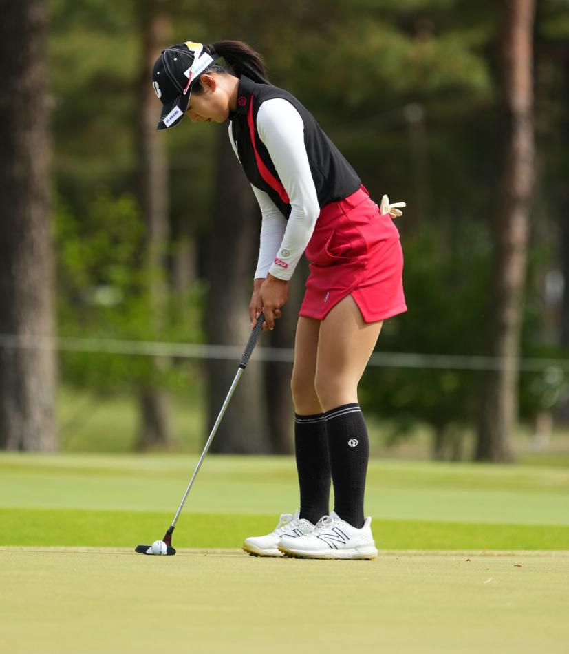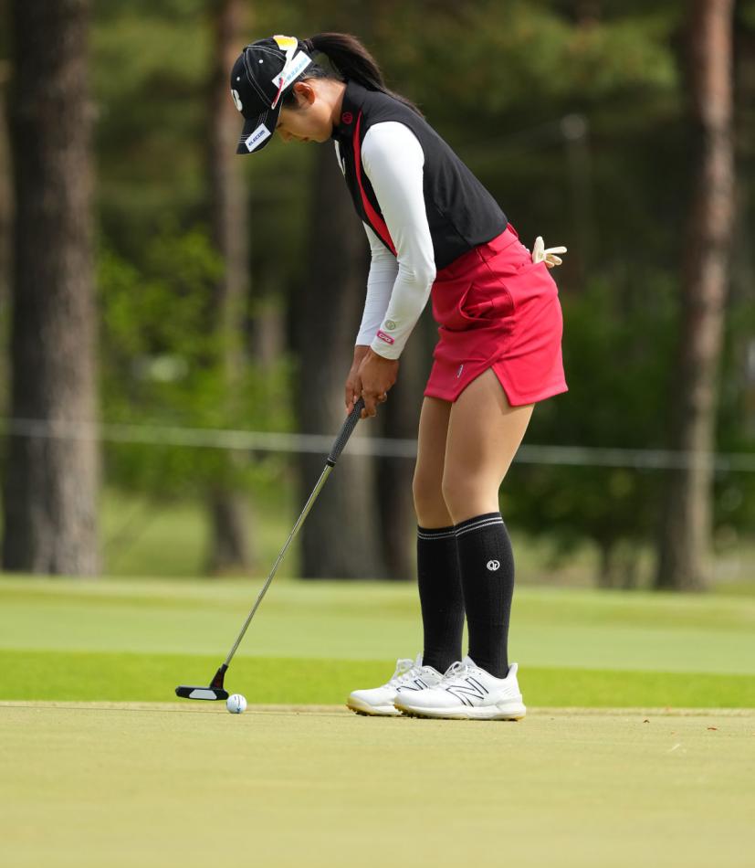 高木萌衣のパッティングストローク(斜め前方)|フォロー①