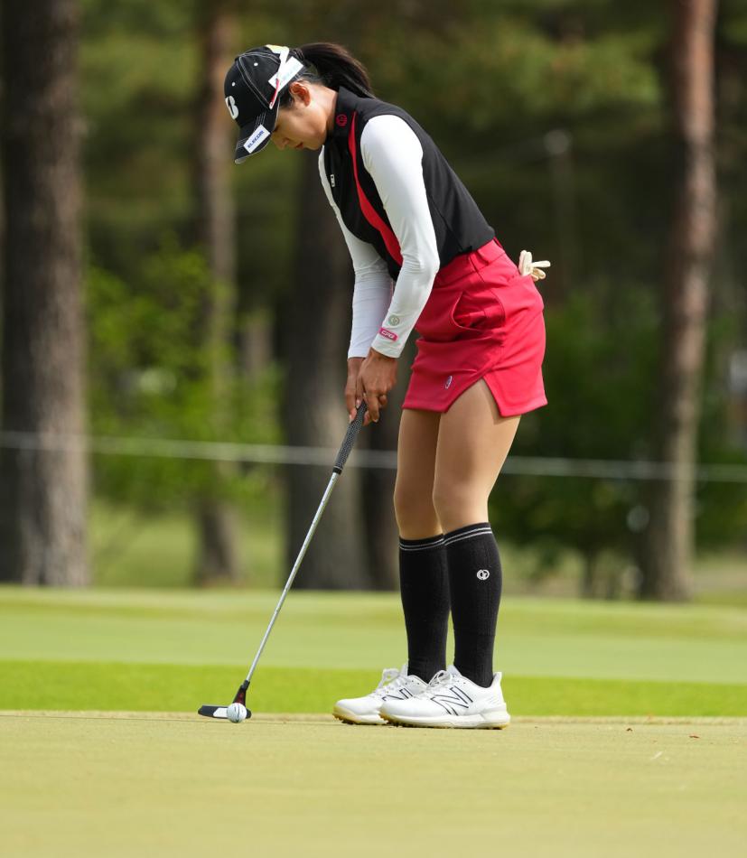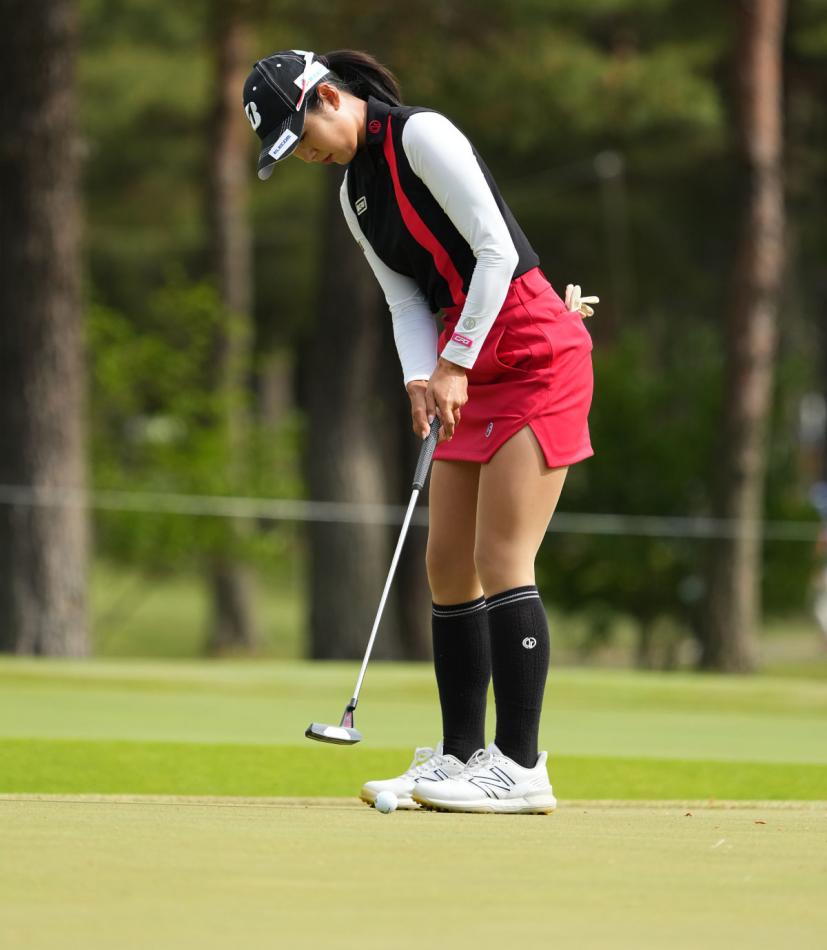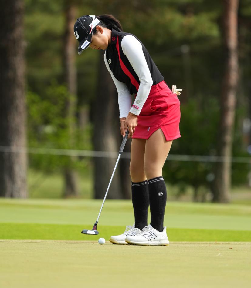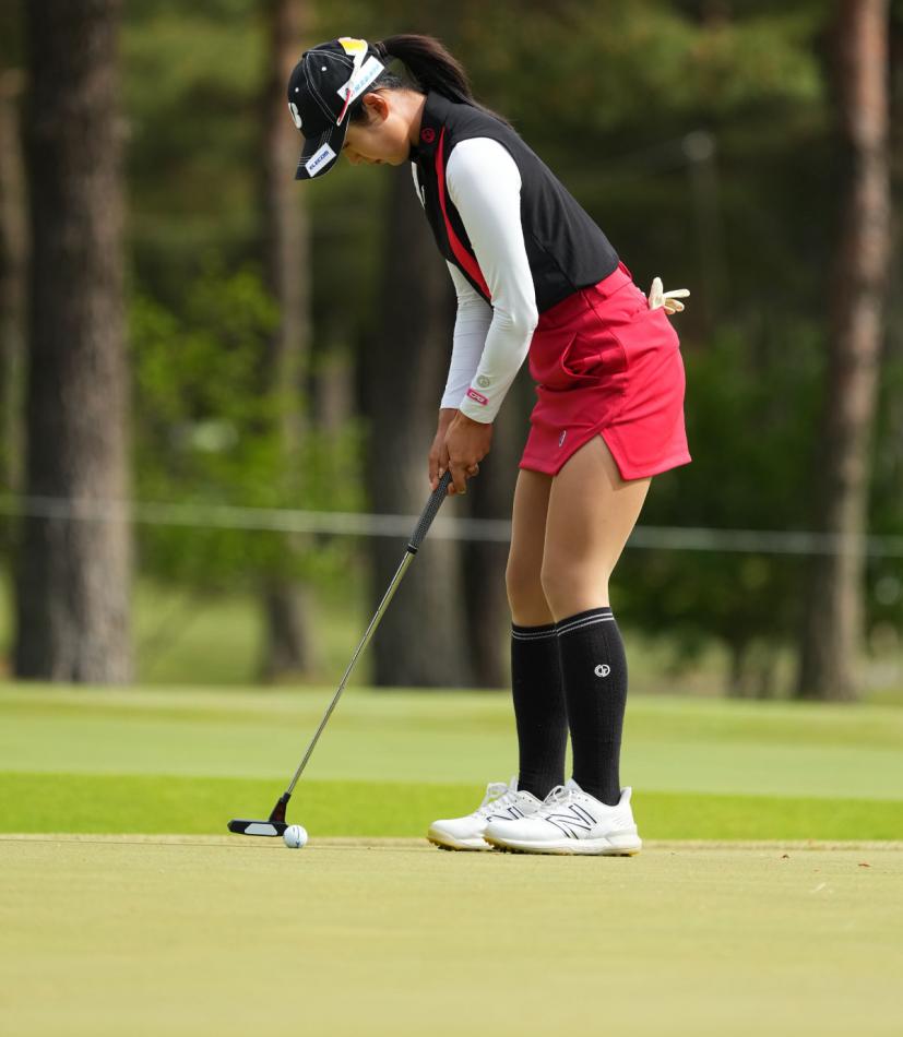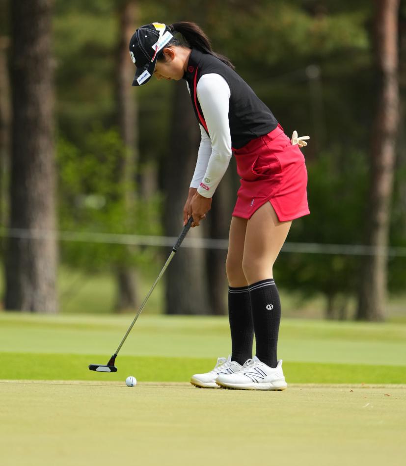 高木萌衣のパッティングストローク(斜め前方)|フォロー①