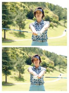 アマチュアの皆さんは手首を横にヒネったり、シャクリ上げようとしたりする人が多いのですが、正しいのはフォローで右手のヒラが下方向(地面)を向くこと。卓球やテニスでオーバースピンをかけるようなイメージです。右手のヒラが下を向くとフェースがゆるやかに閉じるので、インパクトでのフェース面が安定します。