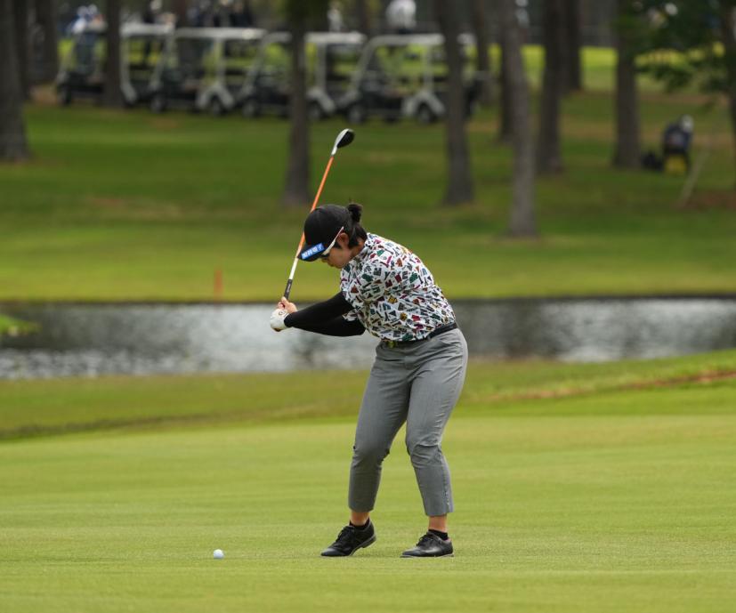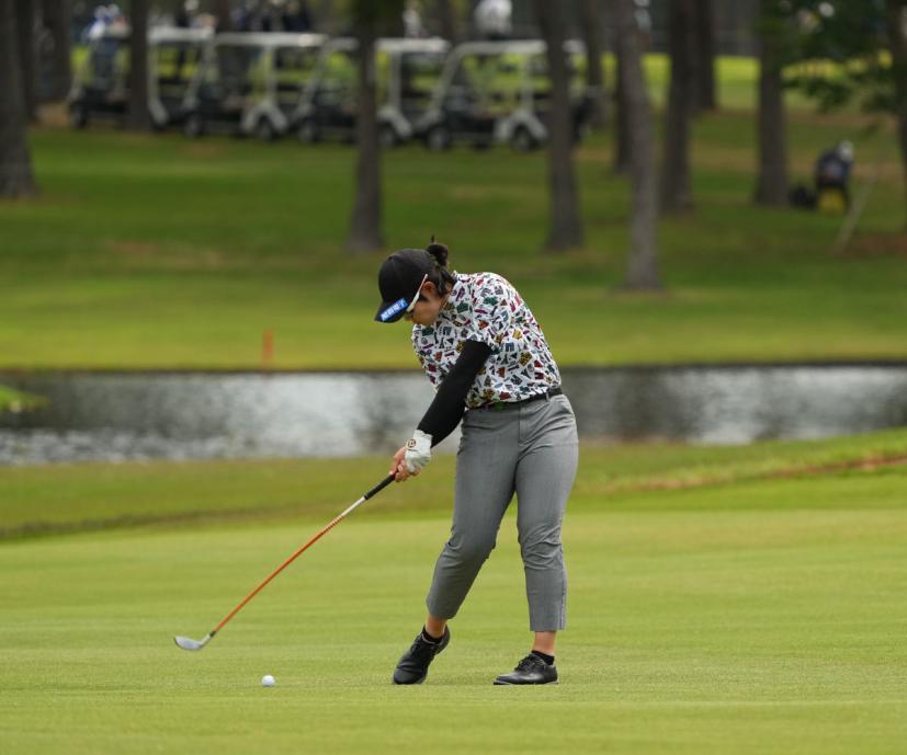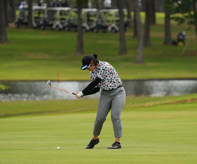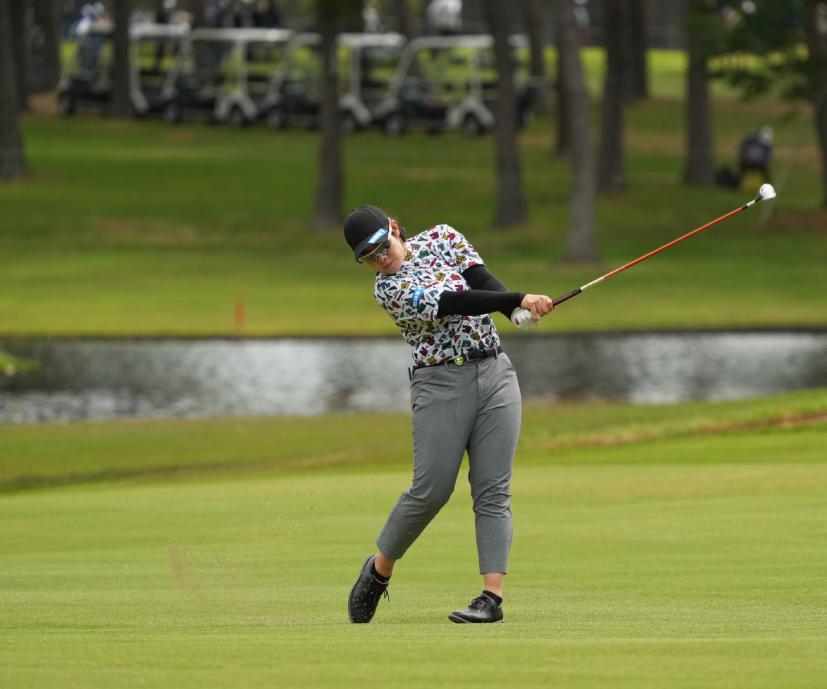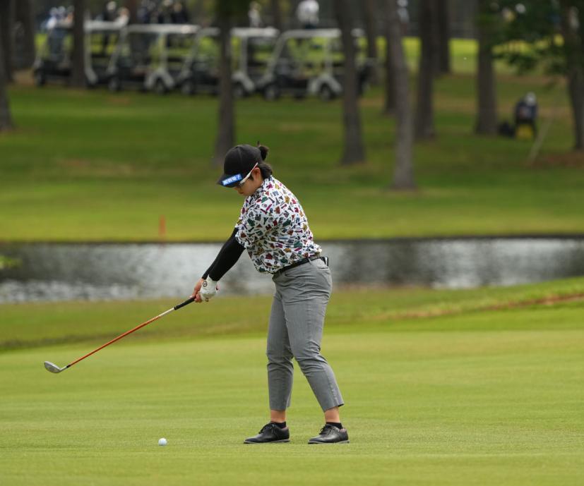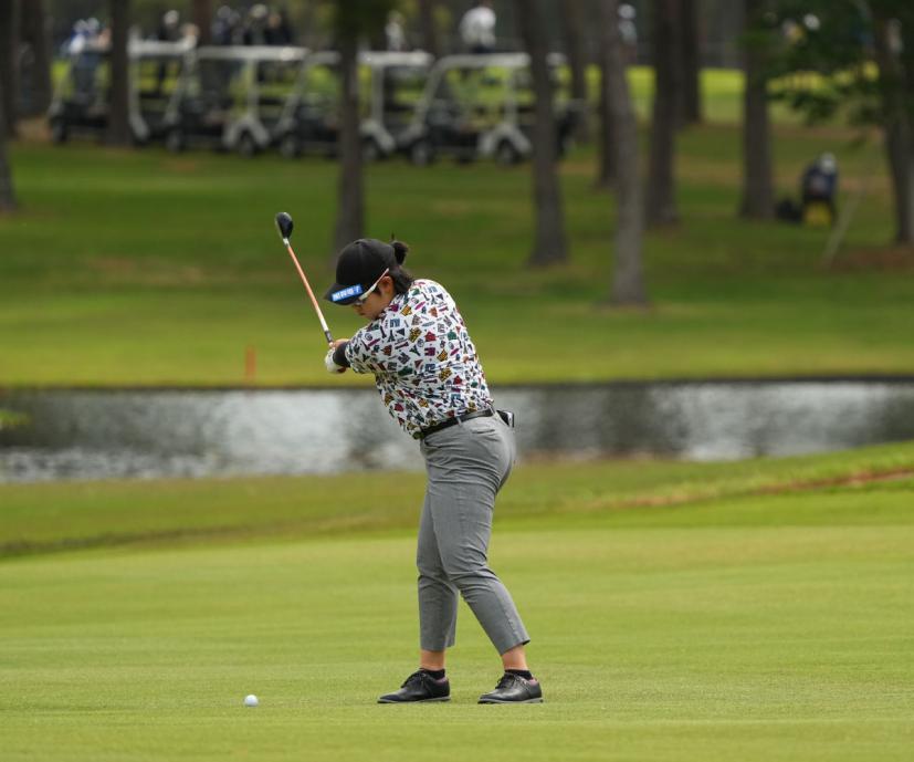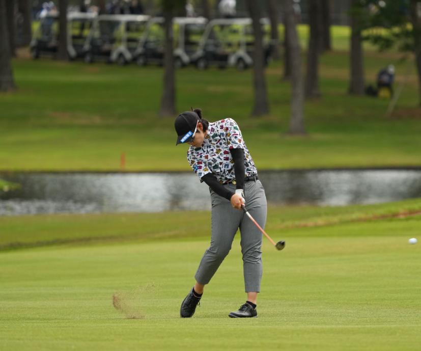 川岸史果のフェアウェイウッドスイング(斜め前方)|フォロー①