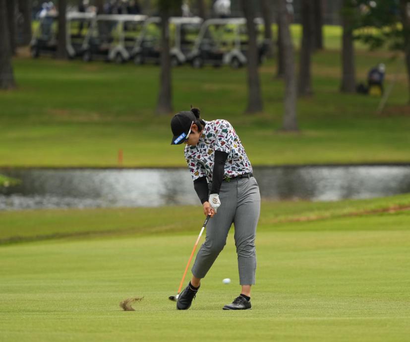 川岸史果のフェアウェイウッドスイング(斜め前方)|インパクト