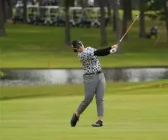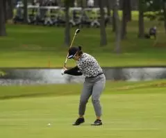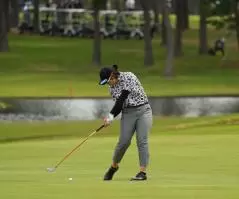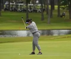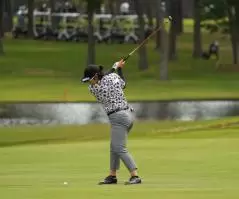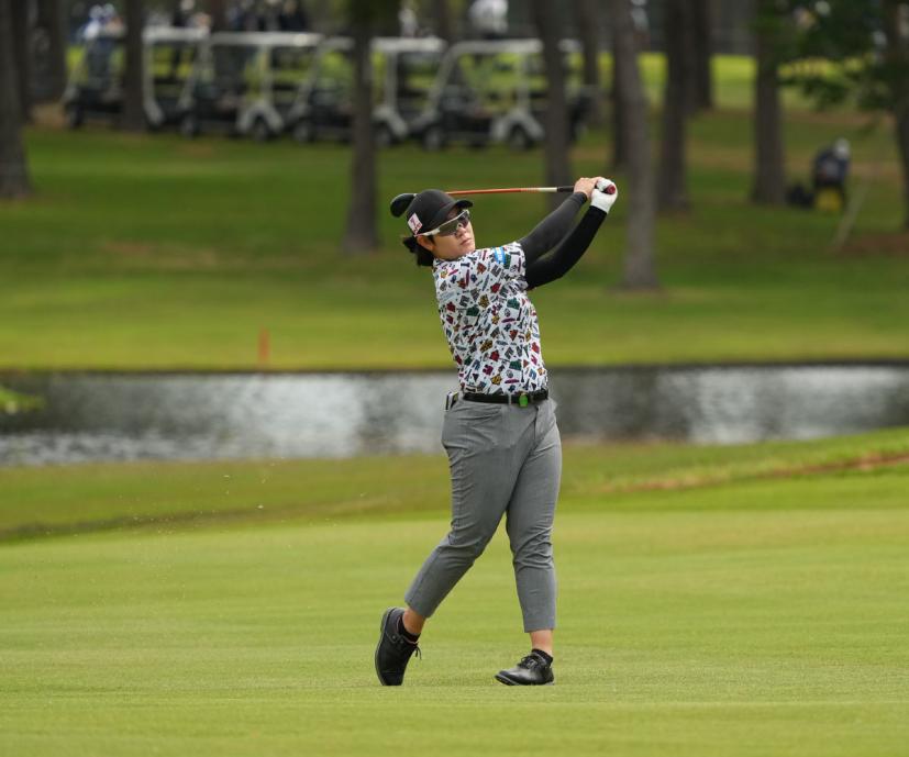 川岸史果のフェアウェイウッドスイング(斜め前方)|フォロー②