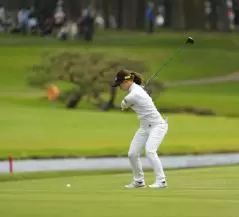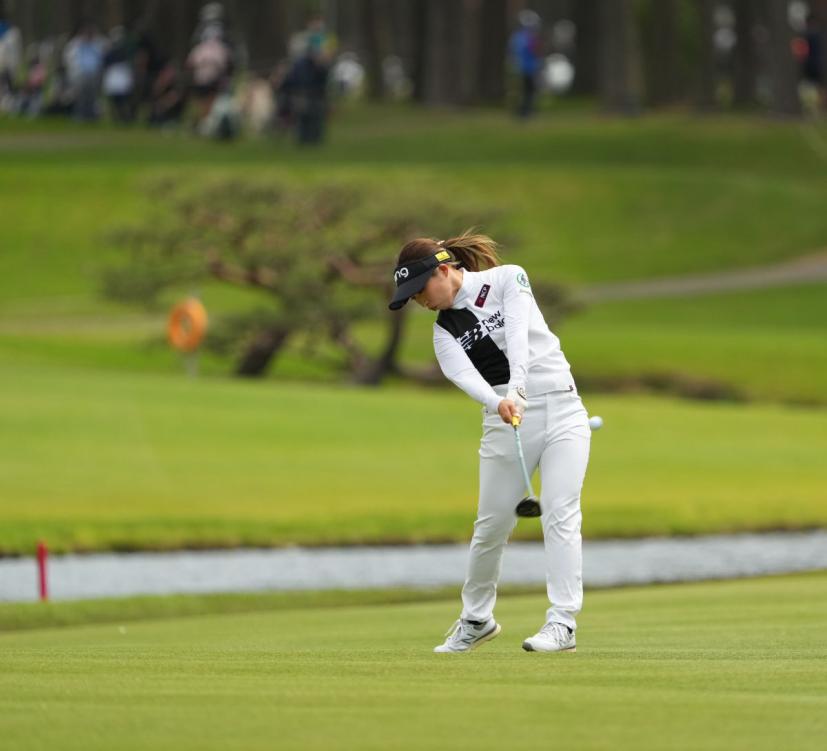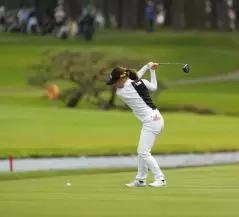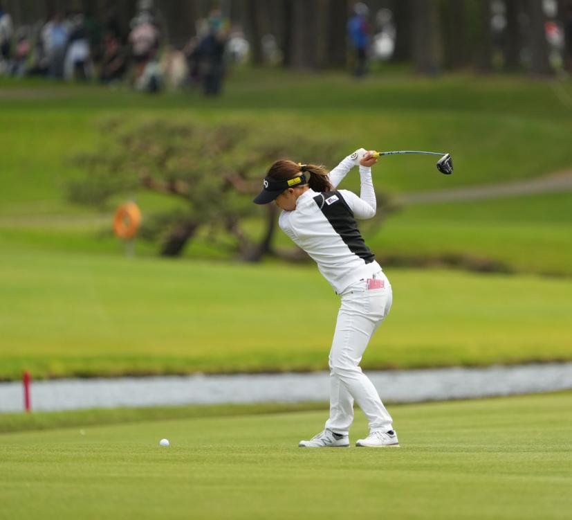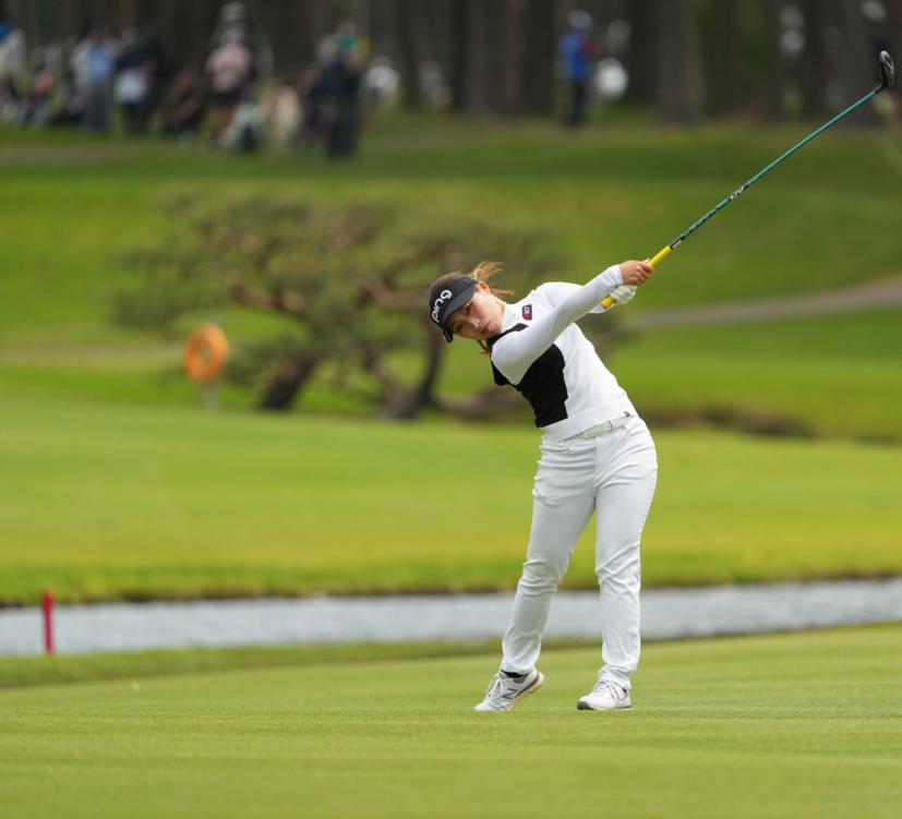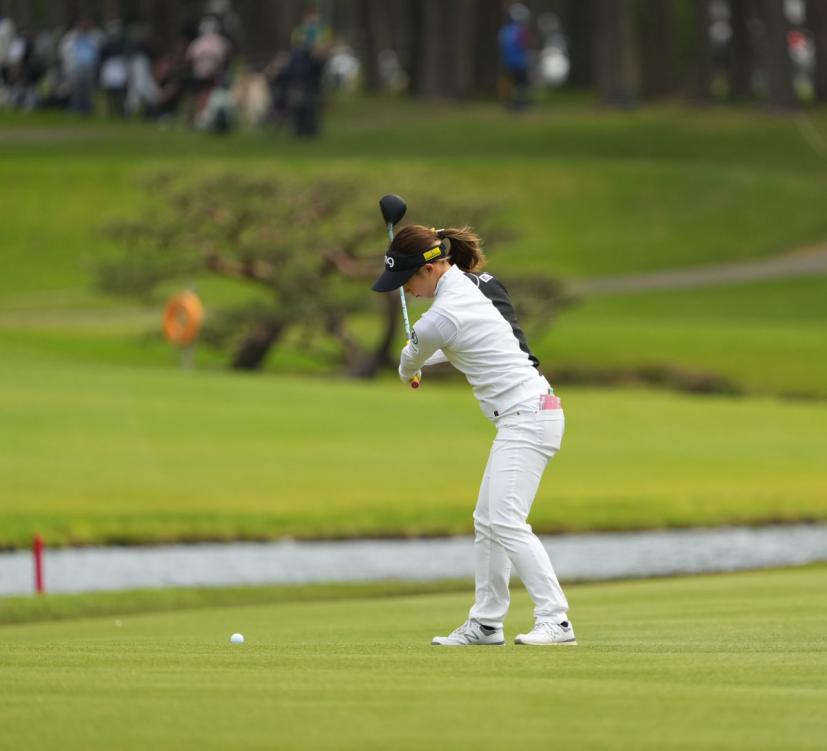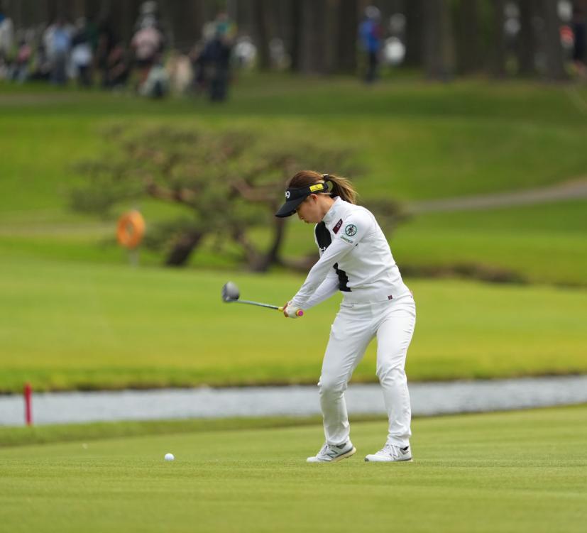 大出瑞月のフェアウェイウッドスイング(斜め前方)|フォロー①
