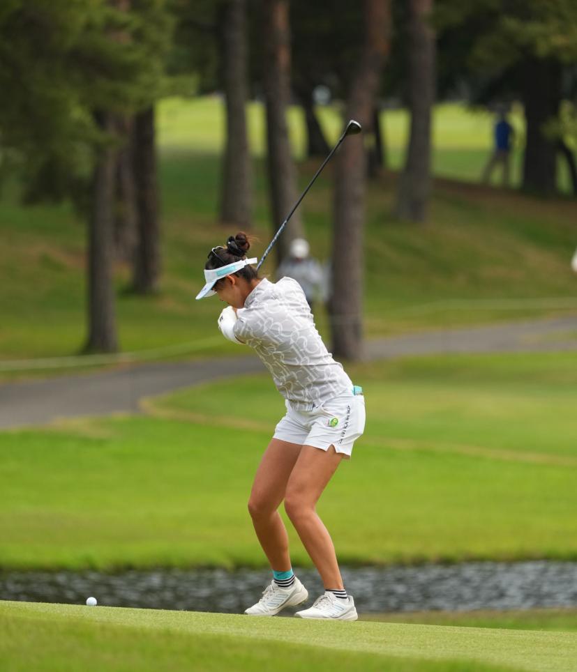 馬場咲希のユーティリティスイング(斜め前方)|インパクト