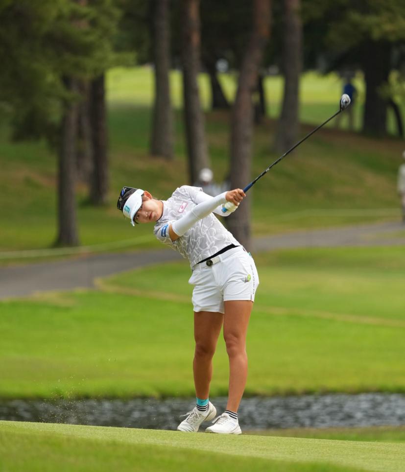 馬場咲希のユーティリティスイング(斜め前方)|フォロー①