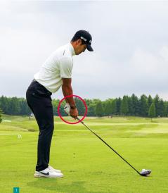 インパクトでは手元が高くなることによって、シャフトの角度も違ってくる。手元がインサイド方向ではなく、目標方向に動くことでボールを押せる。