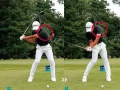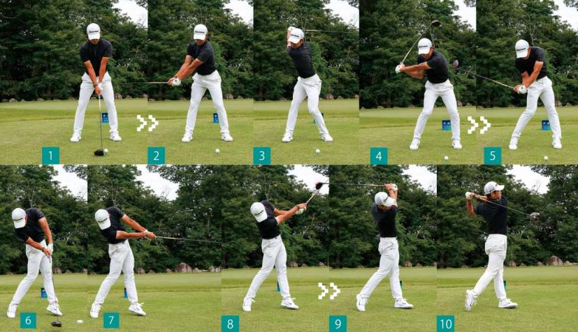 アドレスの高さに手元を戻そうとすると、腕の通り道が狭くなってしまうので思い切ったアームローテーションができません。中島選手だけでなく、最近のPGAツアーで活躍している選手はハンドアップさせることによって腕の通り道にスペースを作り、腕を回しやすくしているのです。
