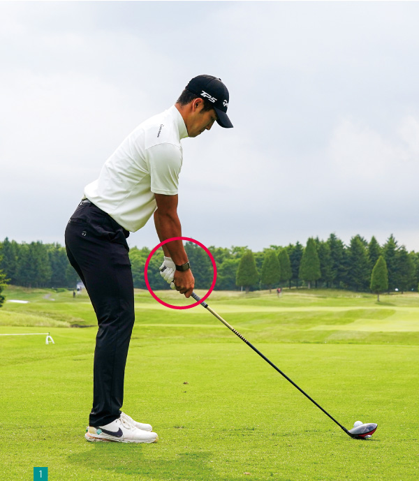 左腕を外側に回すことで、ヘッドがストレートに