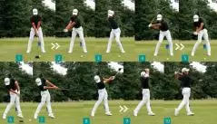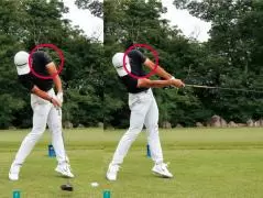 ハーフウェイダウンからフォローにかけては左腕を外側に回すことによって、ヘッドの動きがストレート軌道になる。