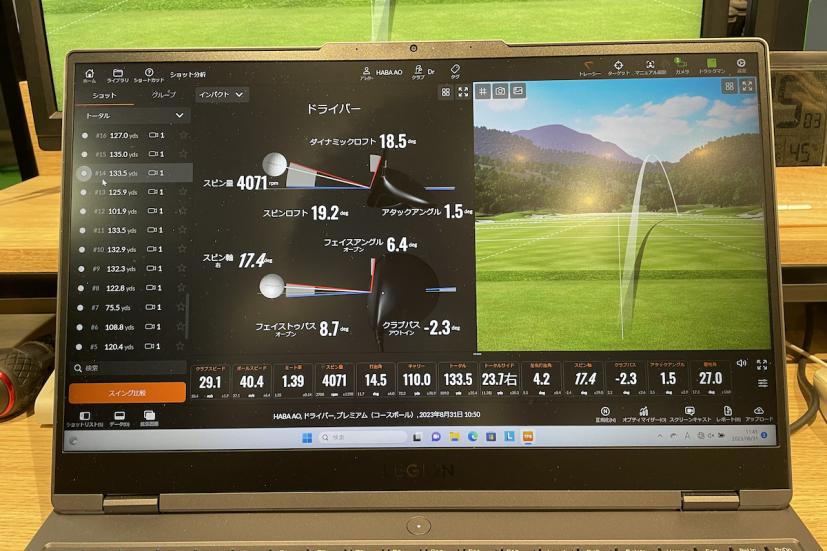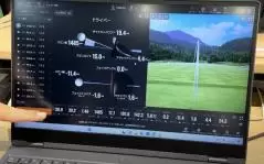 高尾さんのアドバイスを意識して振ってみますが、ボールは相変わらず右に。不安の表情を浮かべていると、高尾さんがデータを見て、入射角は6度アッパーになっているから、意識してスイングできていることを伝えてくれました。