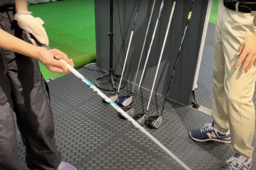 Aさんの場合、レディスモデルだとシャフトが軽くて軟らか過ぎて、コントロールしにくい状態になっています。これからAさんに合うシャフトを見つけていきましょう!」