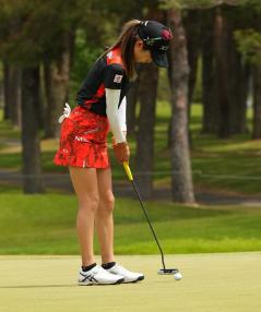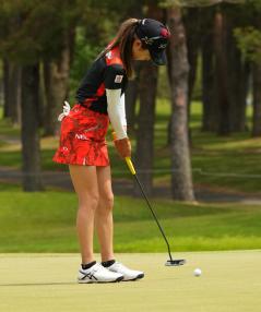 安田祐香のパッティングストローク(斜め後方)|フォロー①