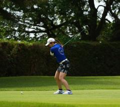 佐久間朱莉のドライバースイング(斜め前方)|フォロー②