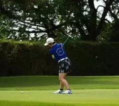 佐久間朱莉のドライバースイング(斜め前方)|フォロー③